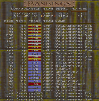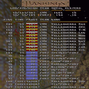 After some hassle in previous matches, we are gettins used to play with this level and since GunSlingers match ( and several training happenings with 'em), we can call this level as our "home".. everybody knows what someone else is thinking and likewise, so 100xMessagemode2 / second is not neccessary. Our team is simply glued together in this map. But even if we like this maps so much, cVH is so fuken good in TF that they managed to get those caps as fast as did we (and even couple more), so we lost this one too. Too bad, I was looking to crush cVH on this map, as it shows in the scores. |